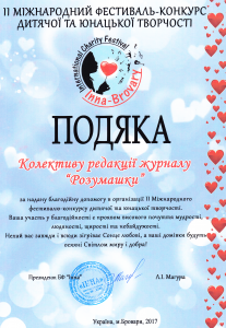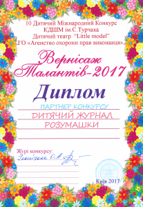 НАЙКРАЩЕ ПЕРІОДИЧНЕ ВИДАННЯ ДЛЯ ДІТЕЙ та ЮНАЦТВА (2017 рік. Державний комітет телебачення і радіомовлення України)